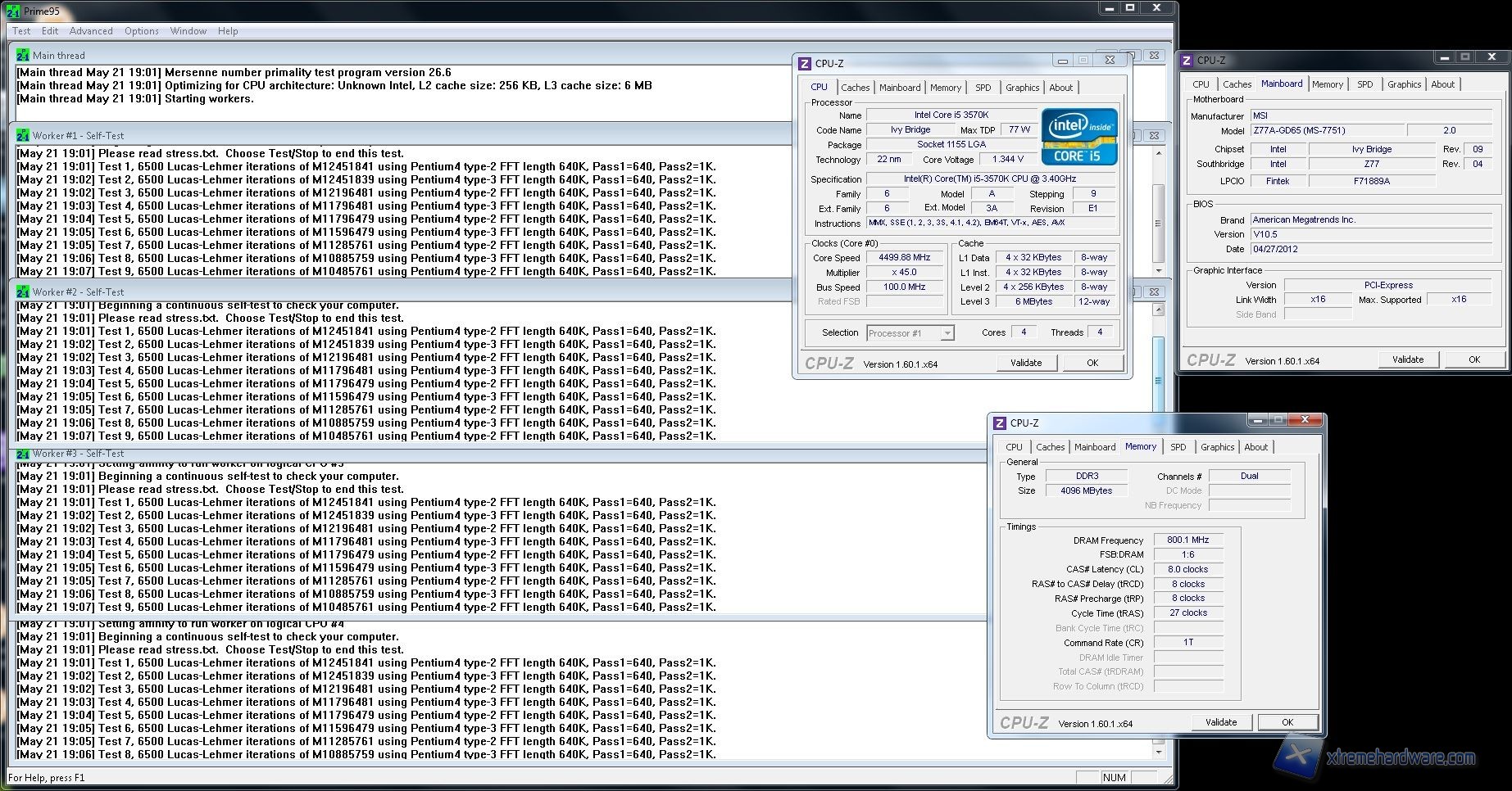 Sebbene il processo produttivo a 22nm abbia portato ad una riduzione abbastanza sensibile dei consumi, per lo meno se consideriamo che mediamente sarà necessario un vcore minore per ottenere un buon daily use, raggiungere frequenze più elevate potrebbe essere tutt’altro che semplice. Il problema risiede nelle temperature dei core che raggiungono temperature molto elevate. Il nostro ipotetico daily use con un comune raffreddamento ha portato ad una frequenza stabile di 4500 MHz abbinata ad un vcore pari a 1,344V. Un risultato sicuramente un po' sotto la media se consideriamo le ultime revisioni delle CPU i5-2500K le quali raggiungevano frequenze ben più elevate. Indubbiamente ci si aspettava ben di più da questo nuove CPU. Durante l'esecuzione di Prime95 la nostra CPU ha raggiunto una temperatura di ben 82°C; sicuramente questo valore risulta davvero elevato e non ha permesso di salire ulteriormente di frequenza. Un aumento di temperature di circa 25°C rispetto alla situazione di default dove abbiamo raggiunto una temperatura di 56°C.