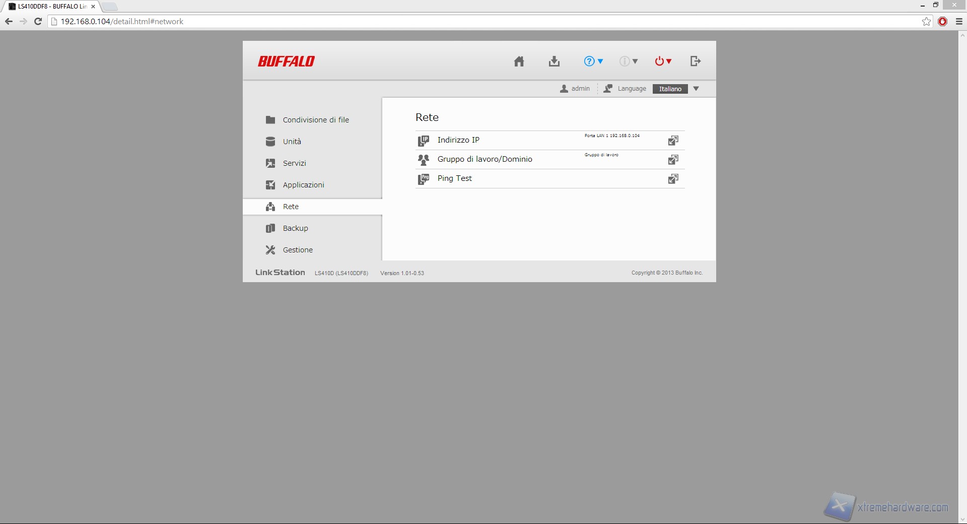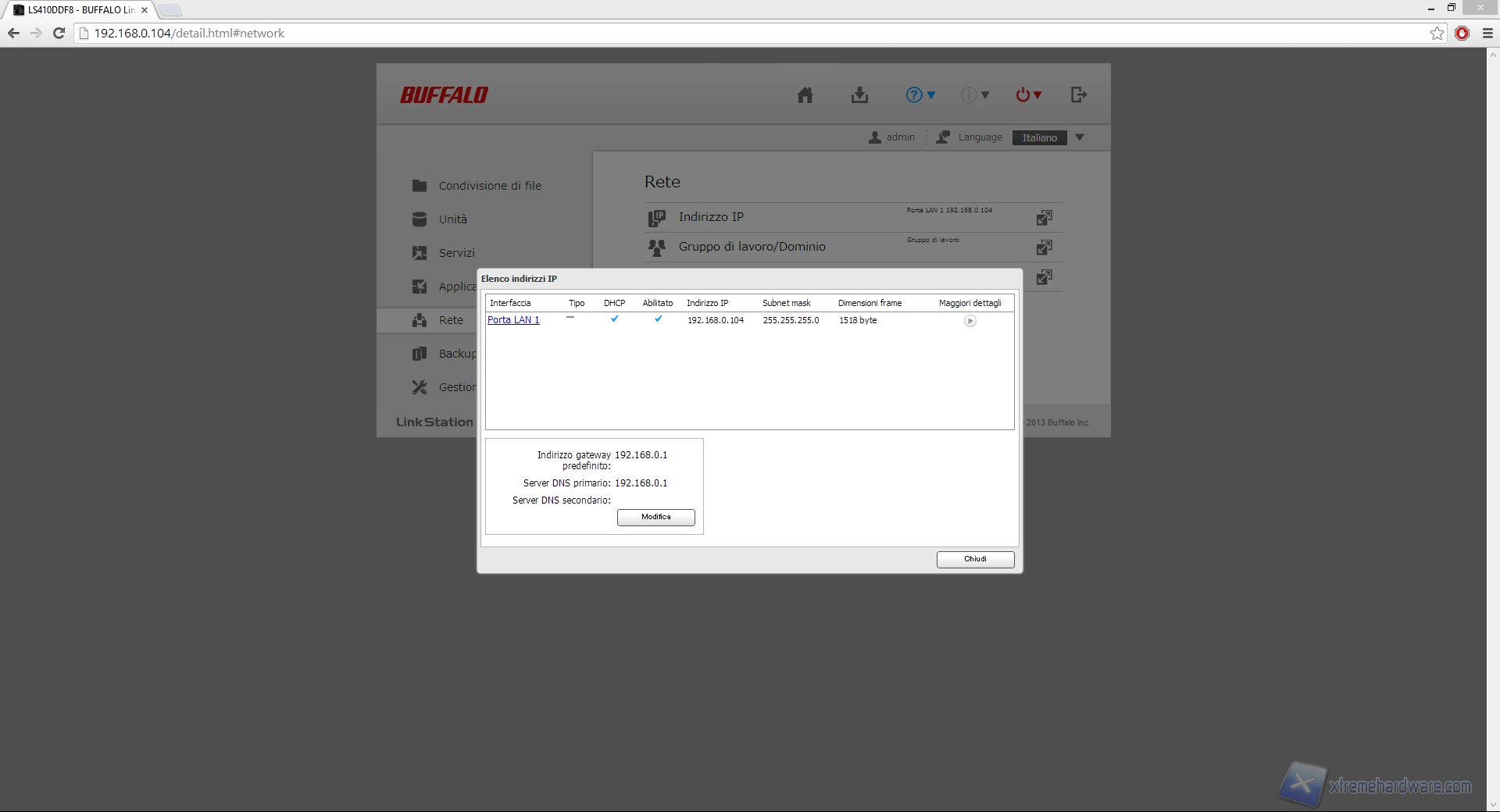 Inseriamo dunque l'Indirizzo IP assegnato all'LS410D nella barra degli indirizzi del nostro browser web ed effettuiamo l'accesso.