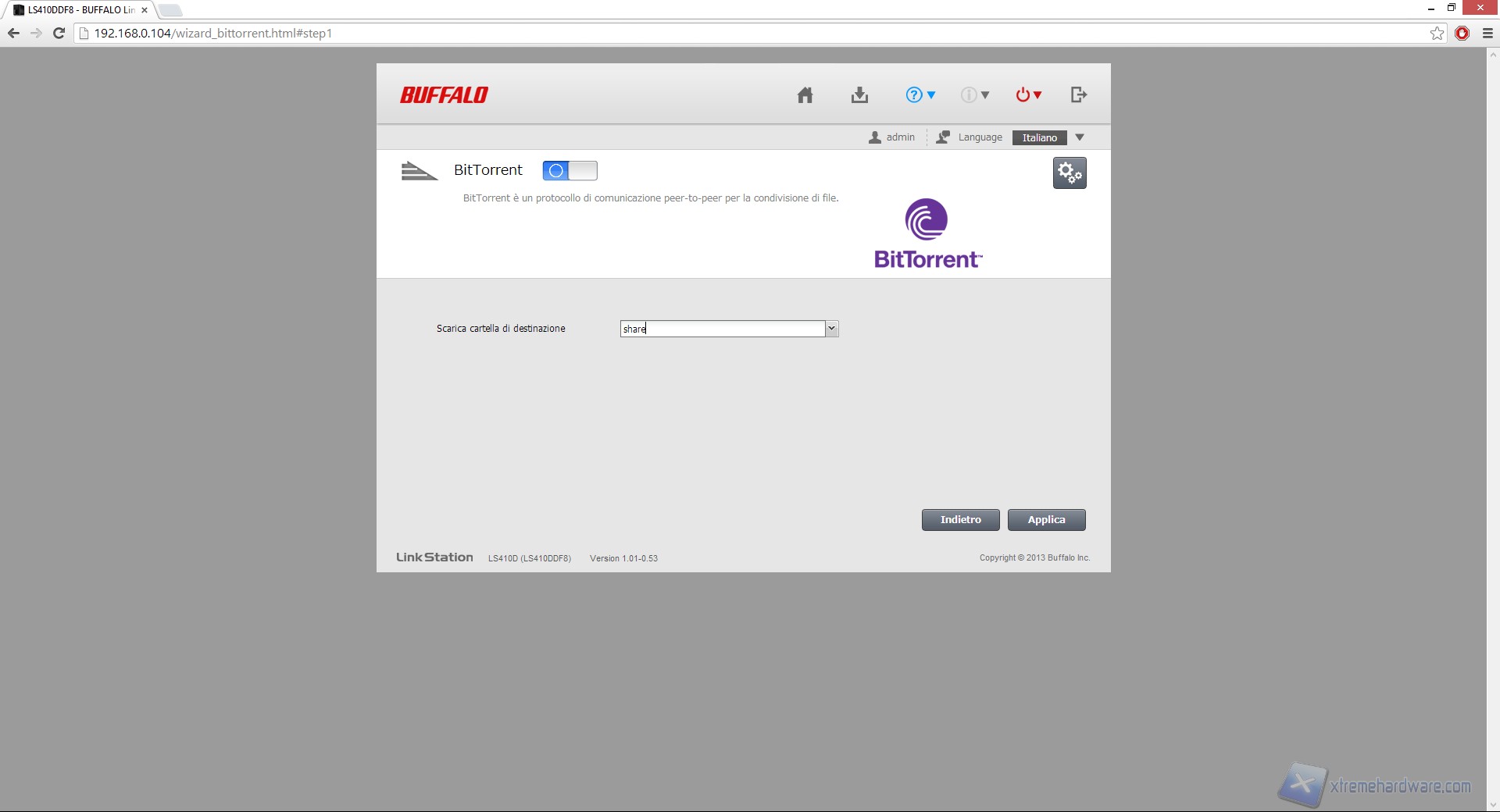 Tramite il protocollo "BitTorrent" possiamo utilizzare lo spazio all'interno del nostro LS410D direttamente con il famoso software P2P e quindi permettere il download automatico dei file all'interno del prodotto.